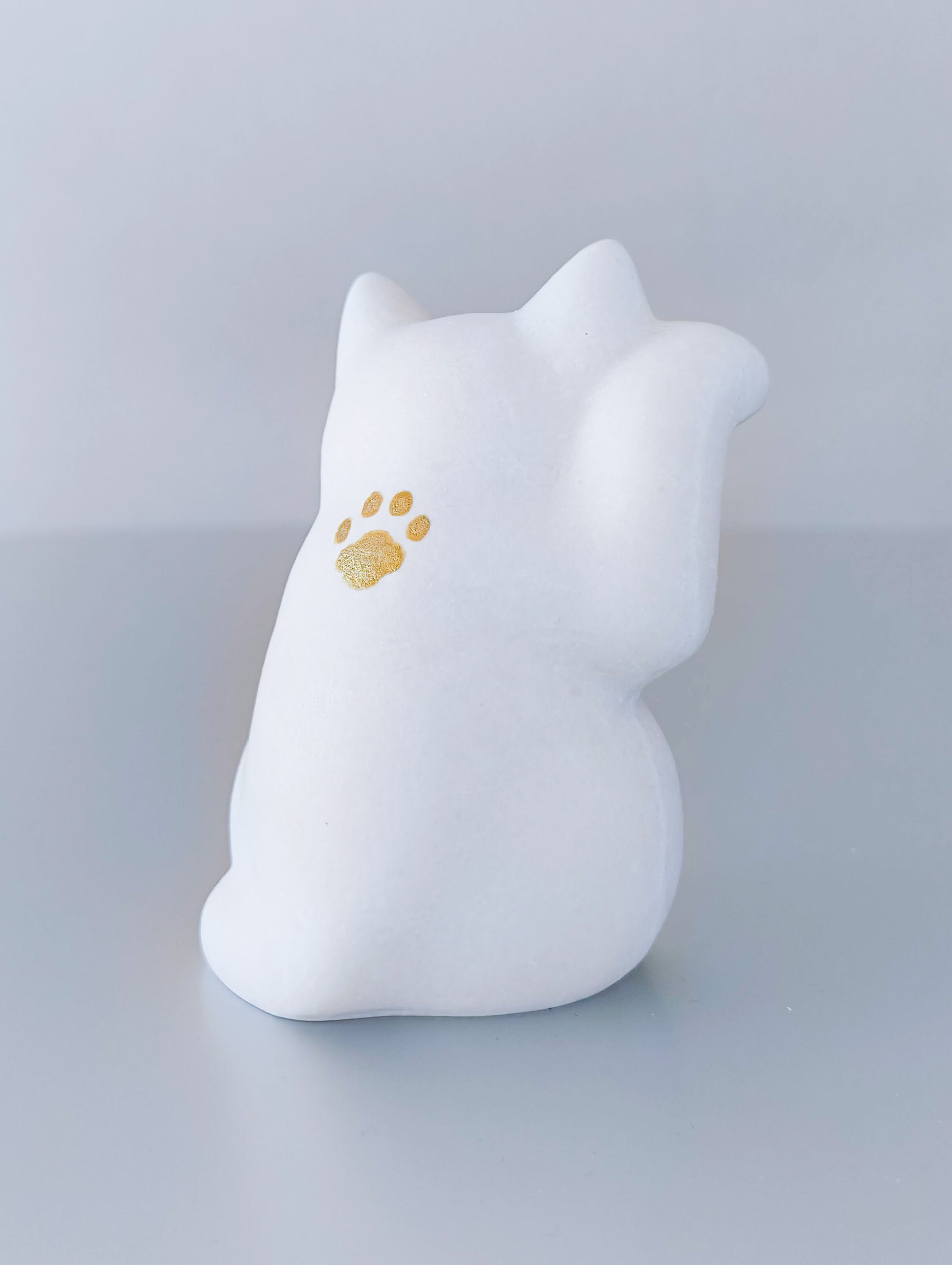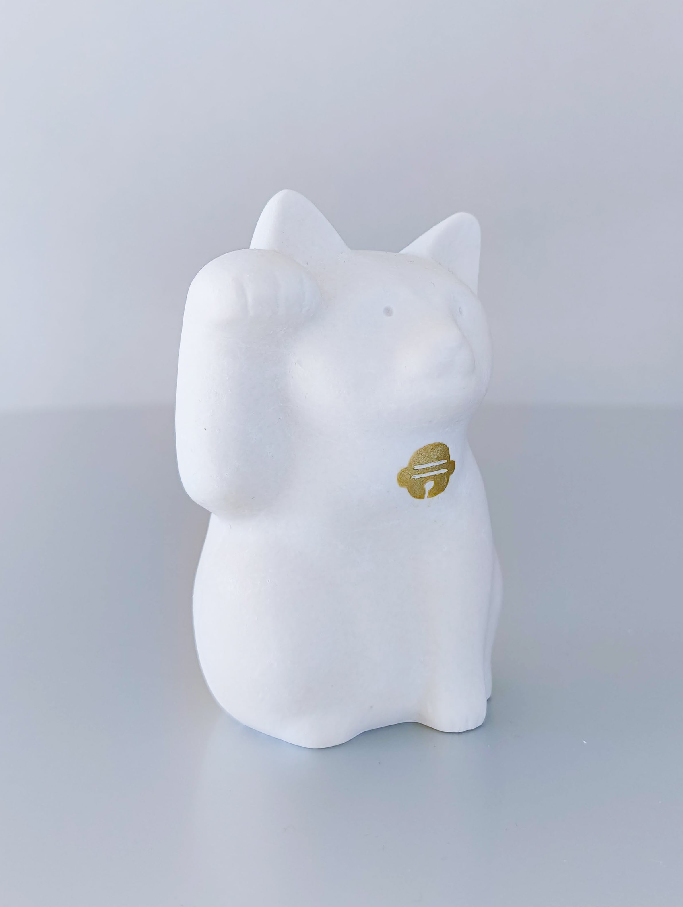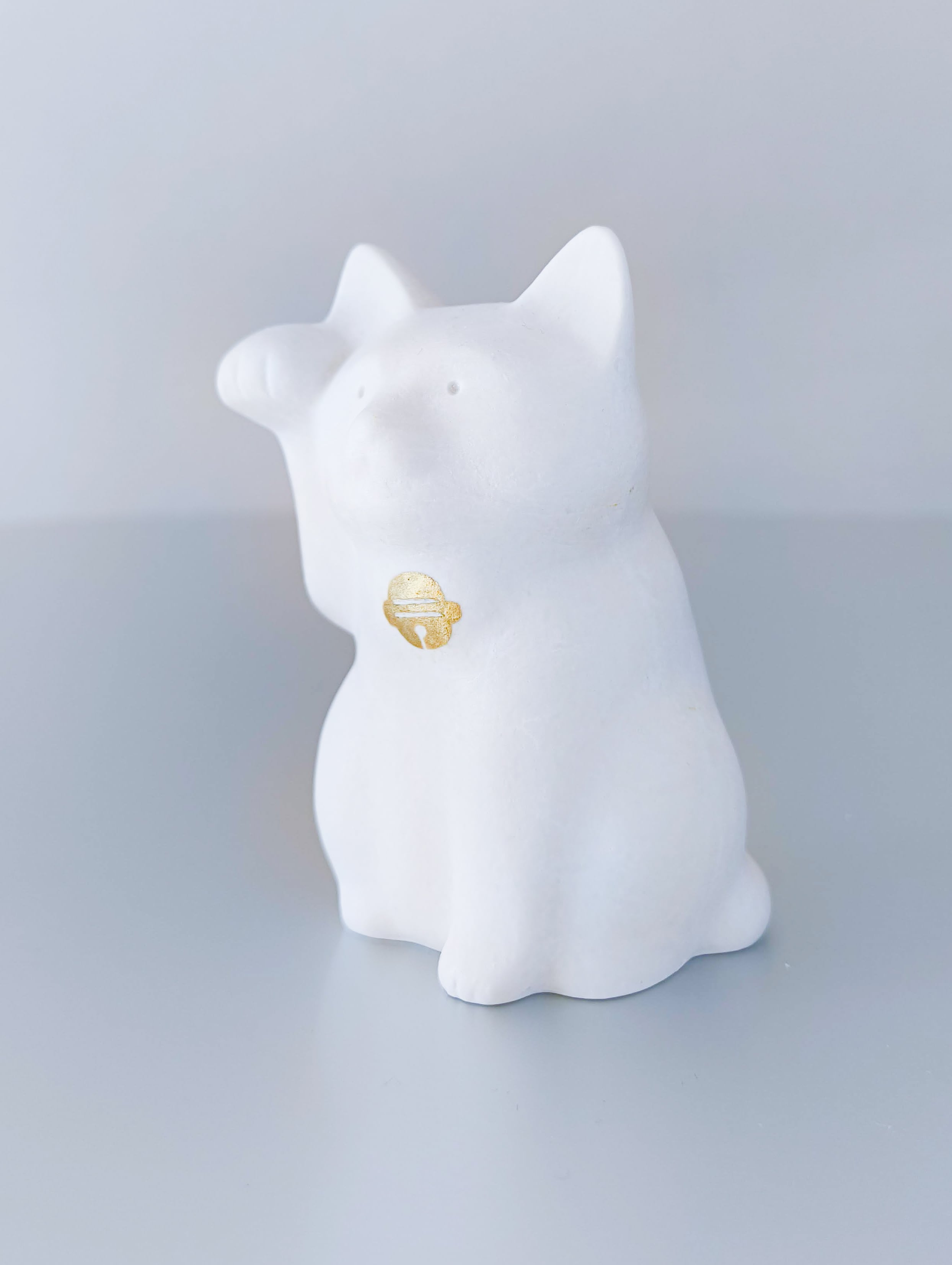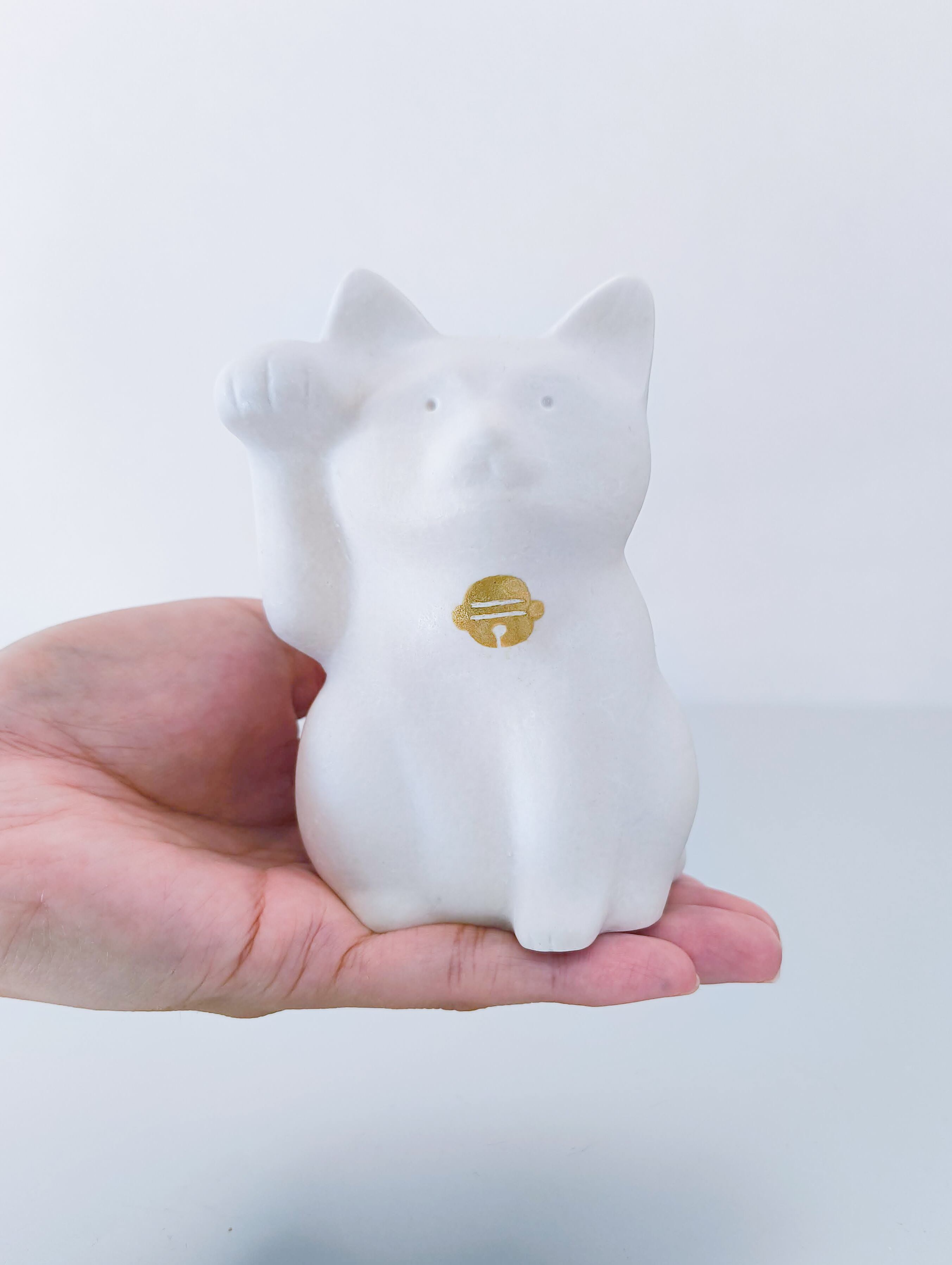 素朴な白地につぶらな瞳が愛らしい、静かに福を招くまねきねこです。